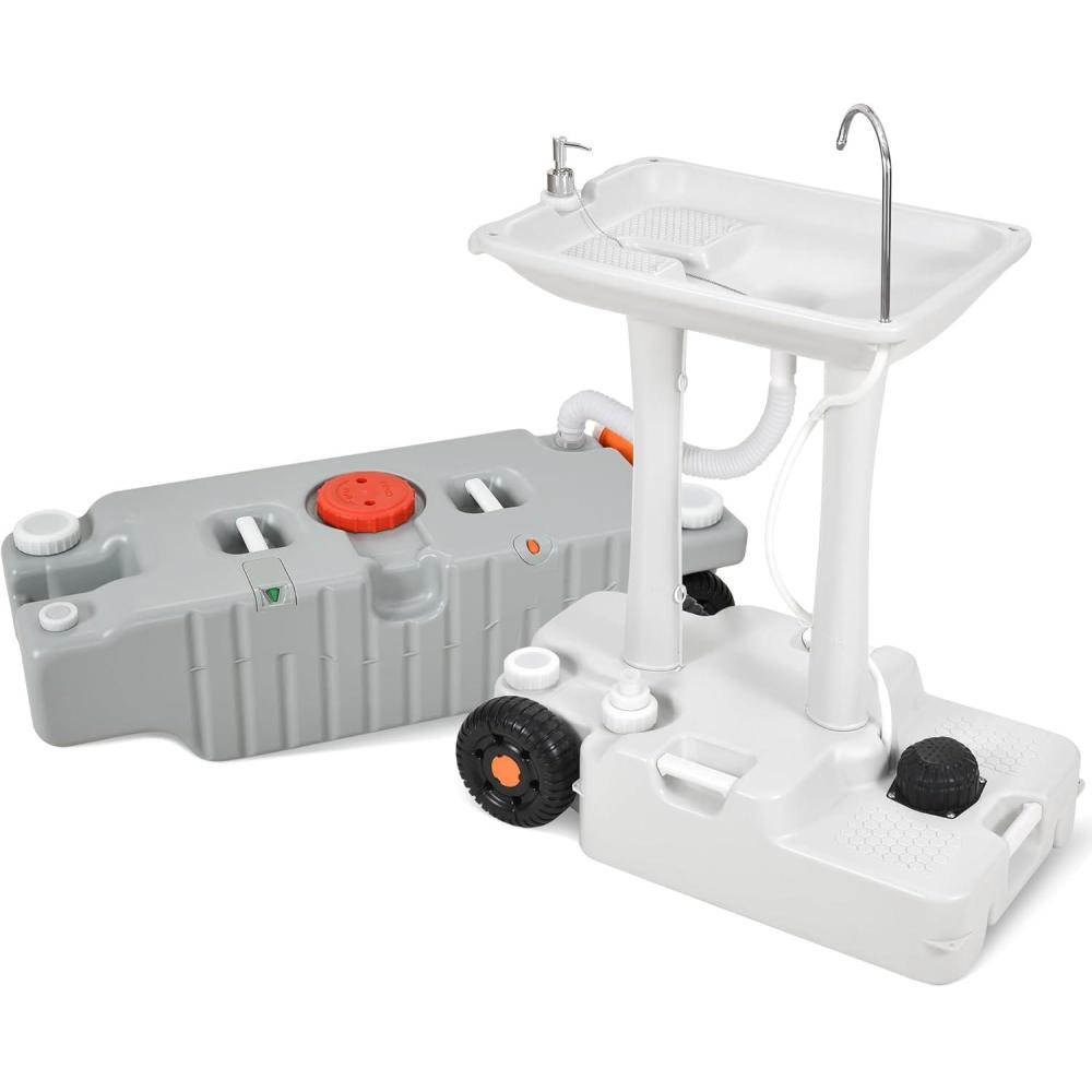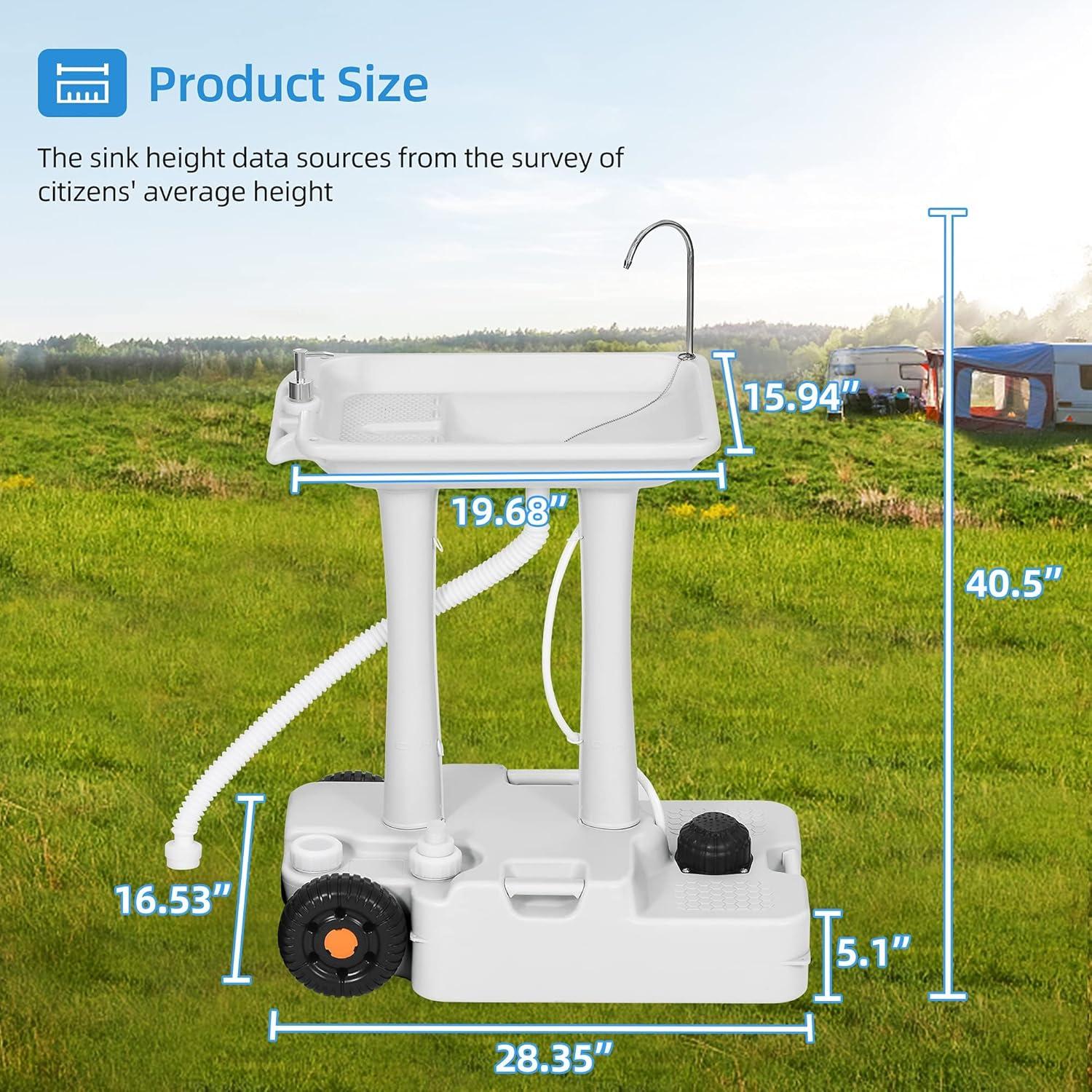 CONVENIENT & POETABLE: With a foot pump, accessing water for washing is a breeze. Plus, its detachable sink with wheels and handles allows for easy movement and transportation to any desired location.