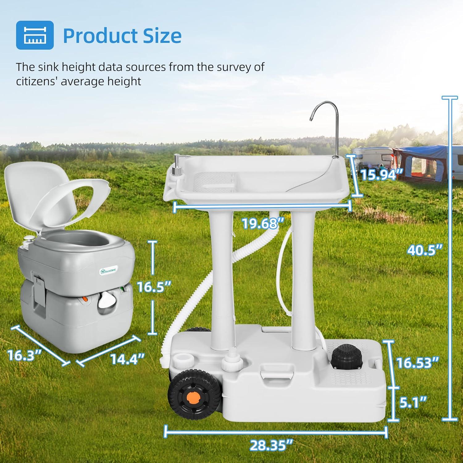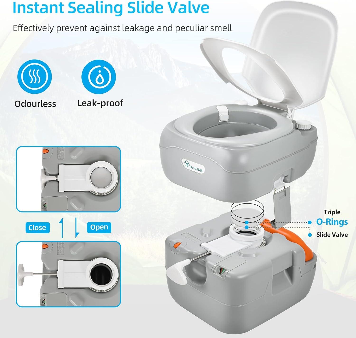 LARGE CAPACITY: The large sewage tank of this portable toilet (5.8 Gallon) saves you the hassle of emptying and leaves you more time for enjoying in outdoor events or camping trips