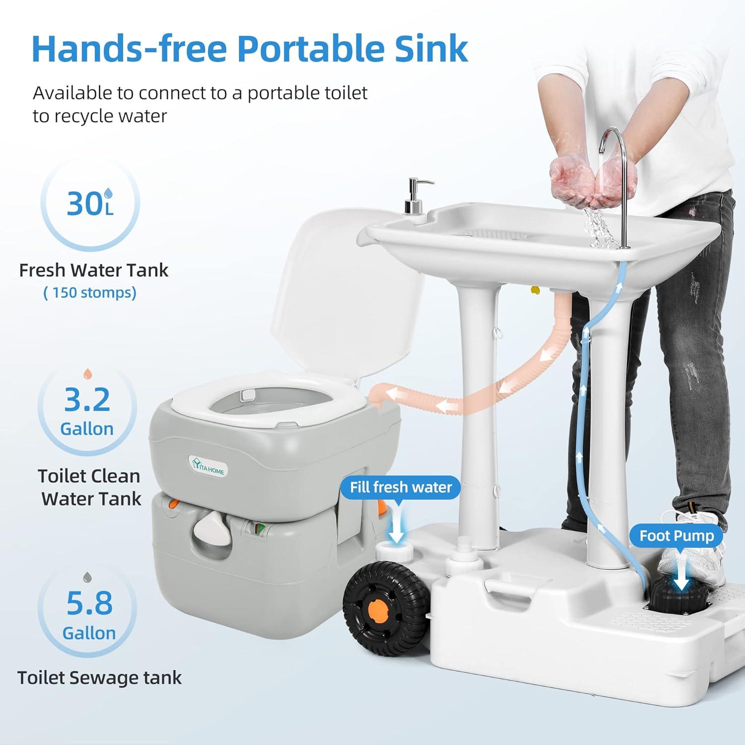 GO GREEN WHILE CAMPING: The portable sink is great for hand-washing, dish-cleaning, or food prep, and the used water can be stored and reused in the toilet's fresh tank for flushing. This is an effective way to make full use of water resources outdoors