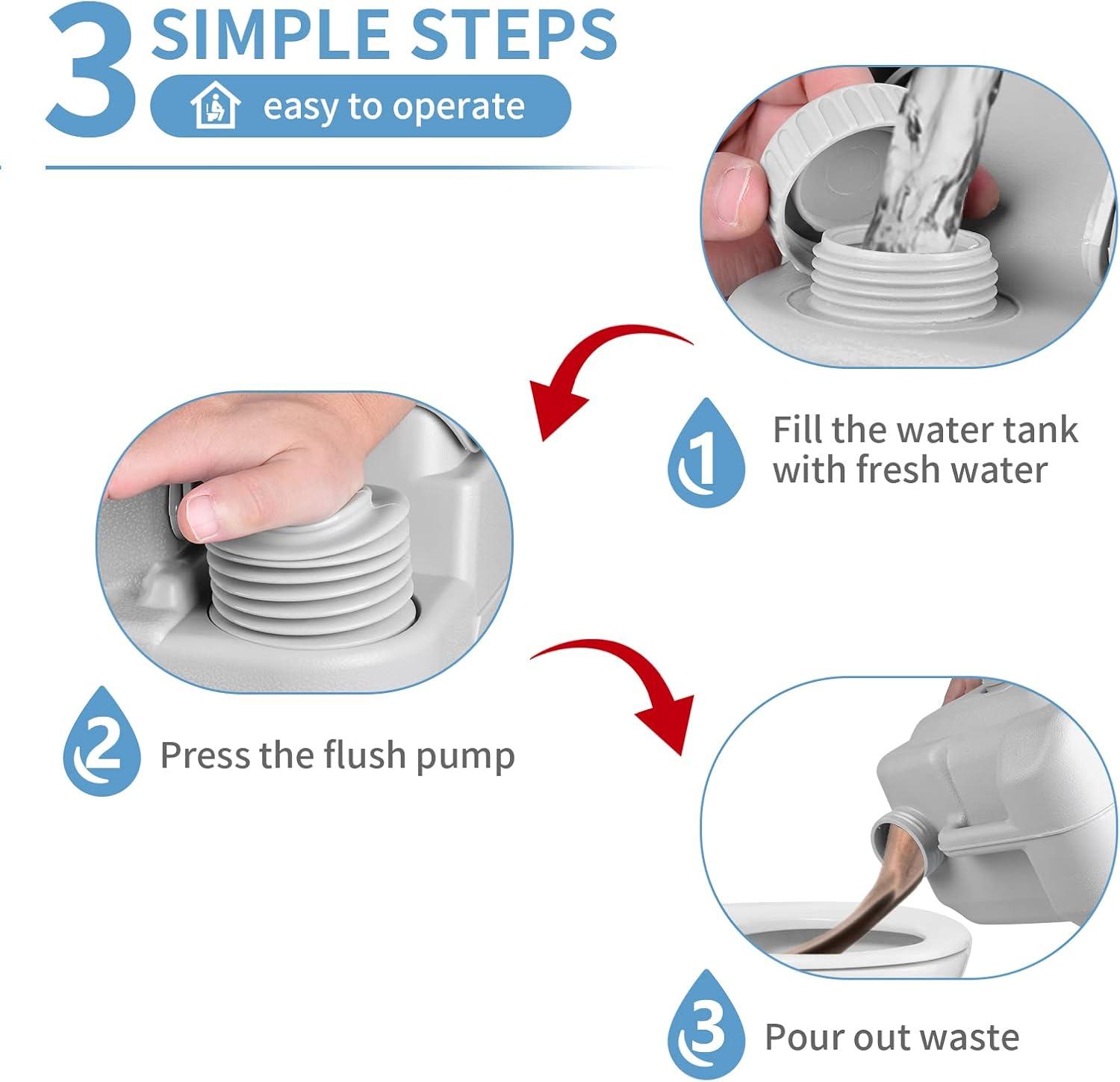 LARGE CAPACITY & REPEATED USE: The portable travel toilet has a 3.2-gallon (12L) freshwater holding tank and a 5.3-gallon (20L) wastewater holding tank, which allows the portable toilet for camping to be used multiple times before it needs to be cleaned, saving you time.