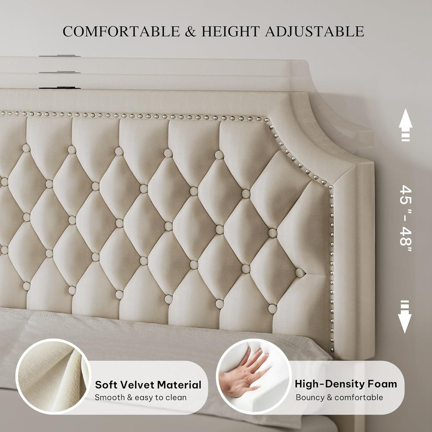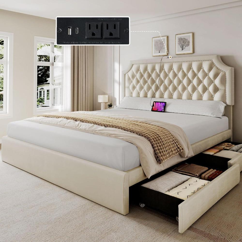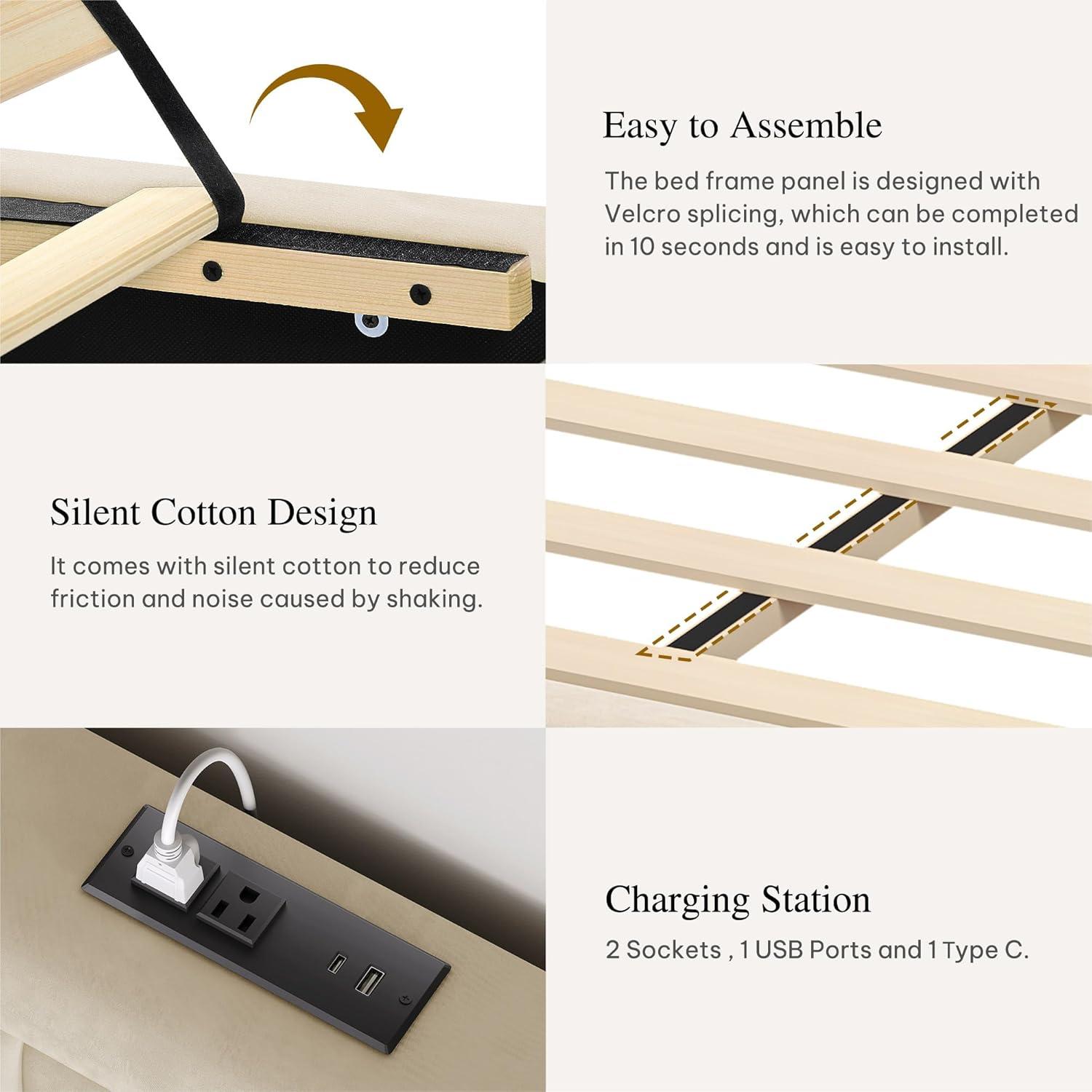 BUILT-IN CHARGING STATION – The queen size storage headboard bed frame built-in charging station, including 2 AC Outlets, 2 USB port, allowing you to charge various electronic devices within easy reach.