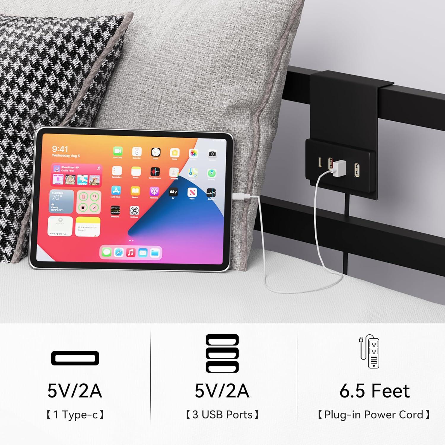 Rapid Charging Hub: Conveniently charge up to four devices simultaneously with the embedded USB ports and Type-C port on this canopy bed frame