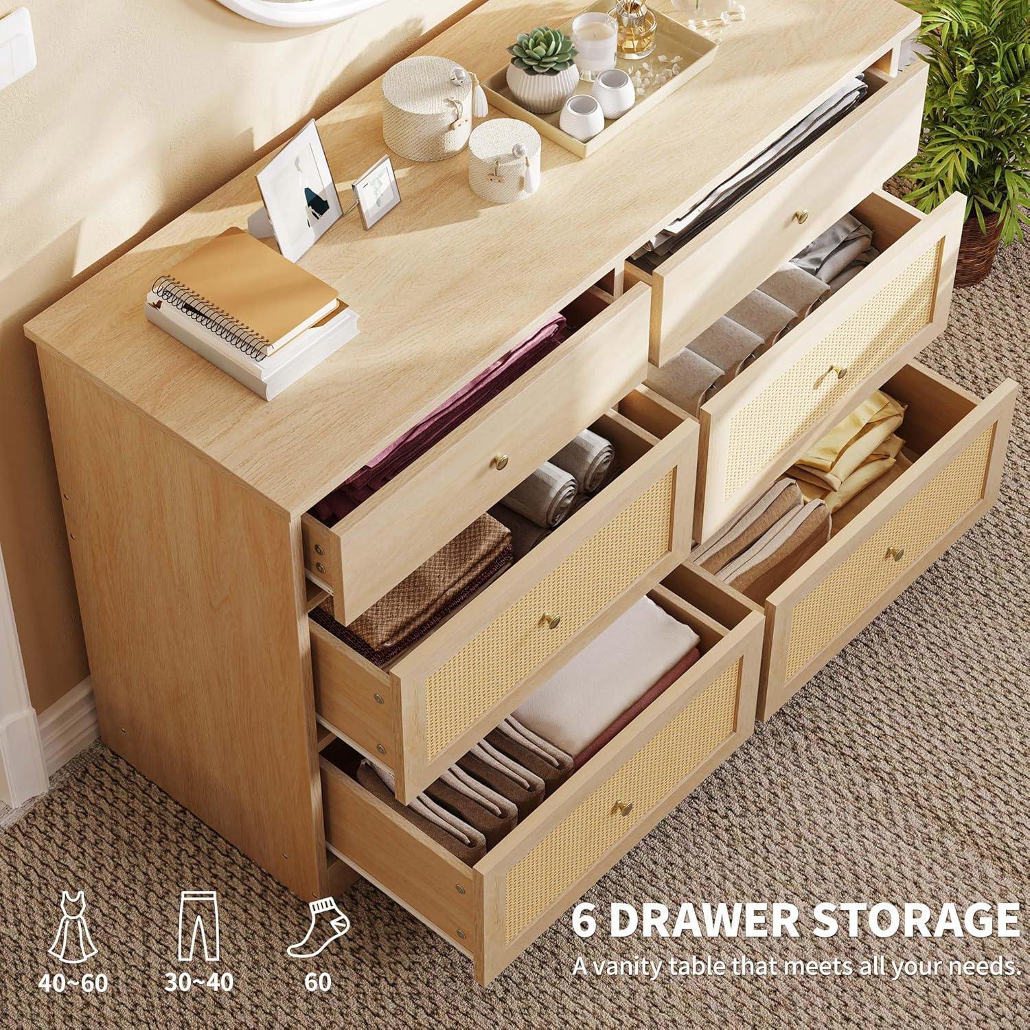 YITAHOME Rattan Dressers & Chests of Drawers, 6 Drawer Modern Closet Dresser, Wood Color(Wood Color)