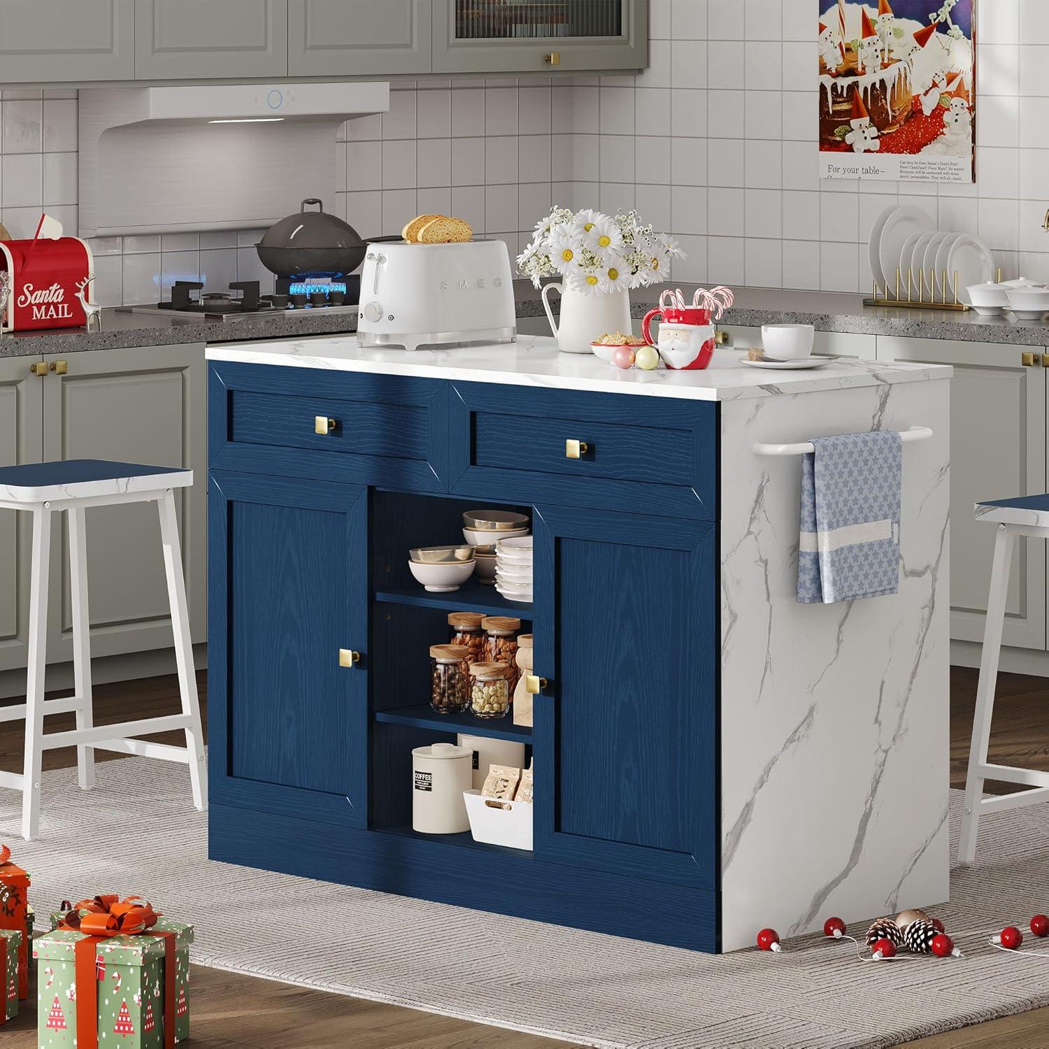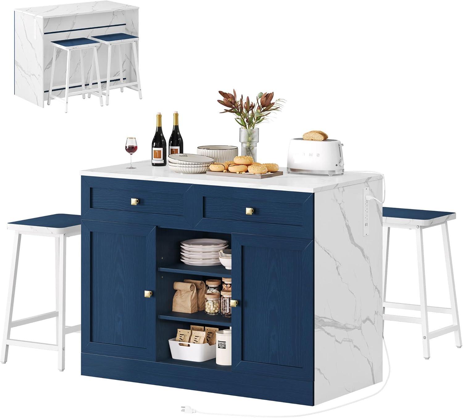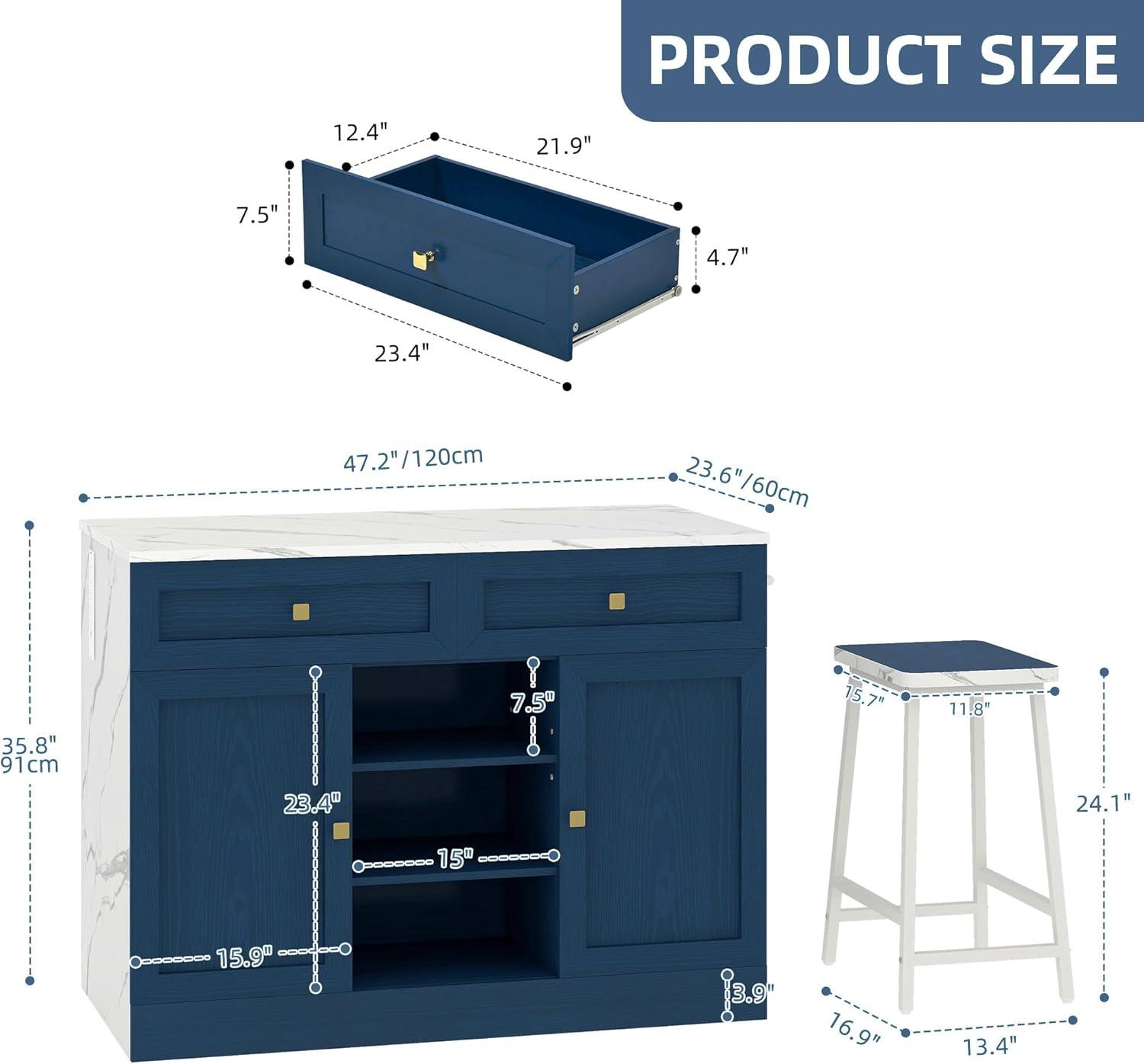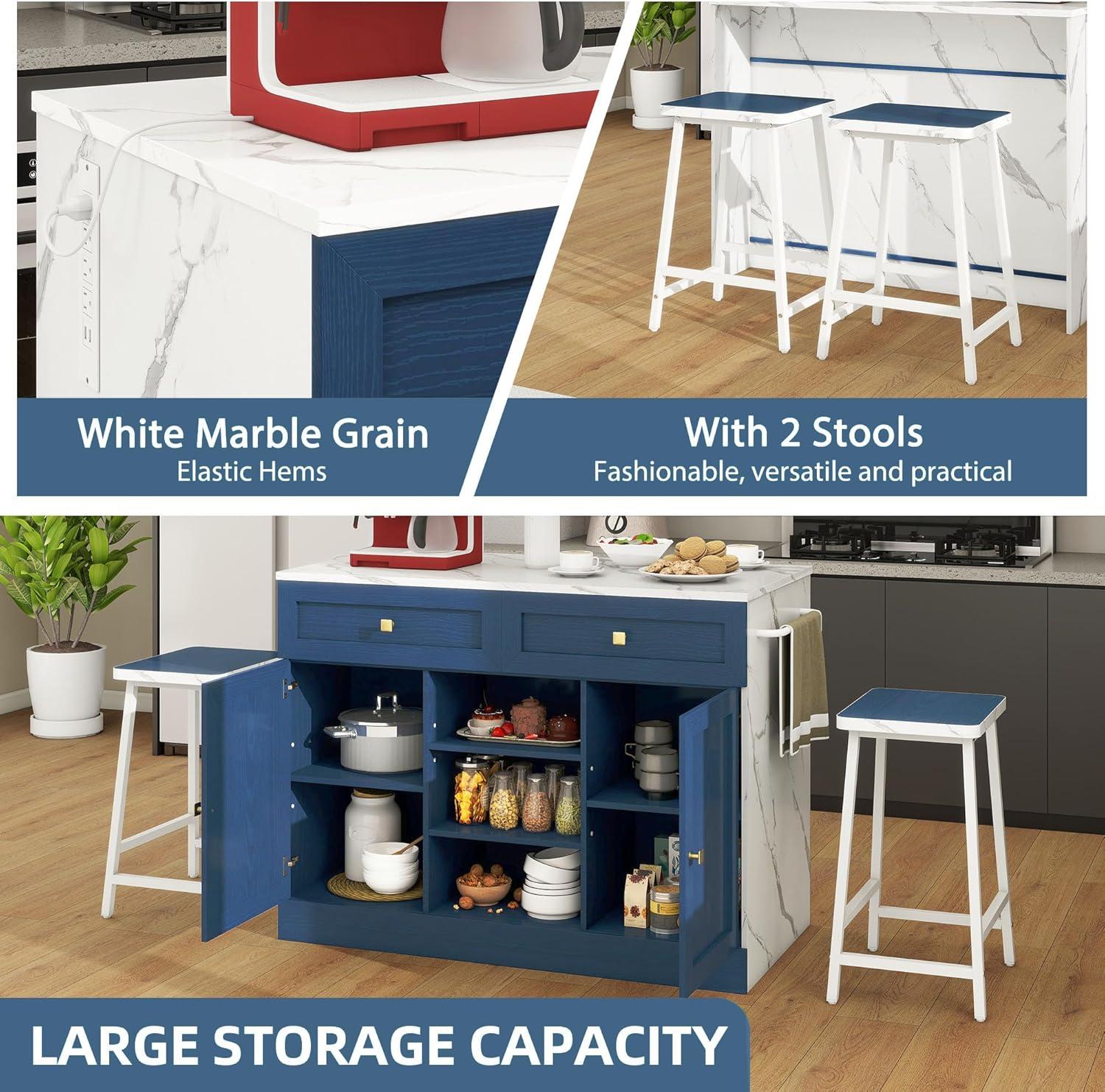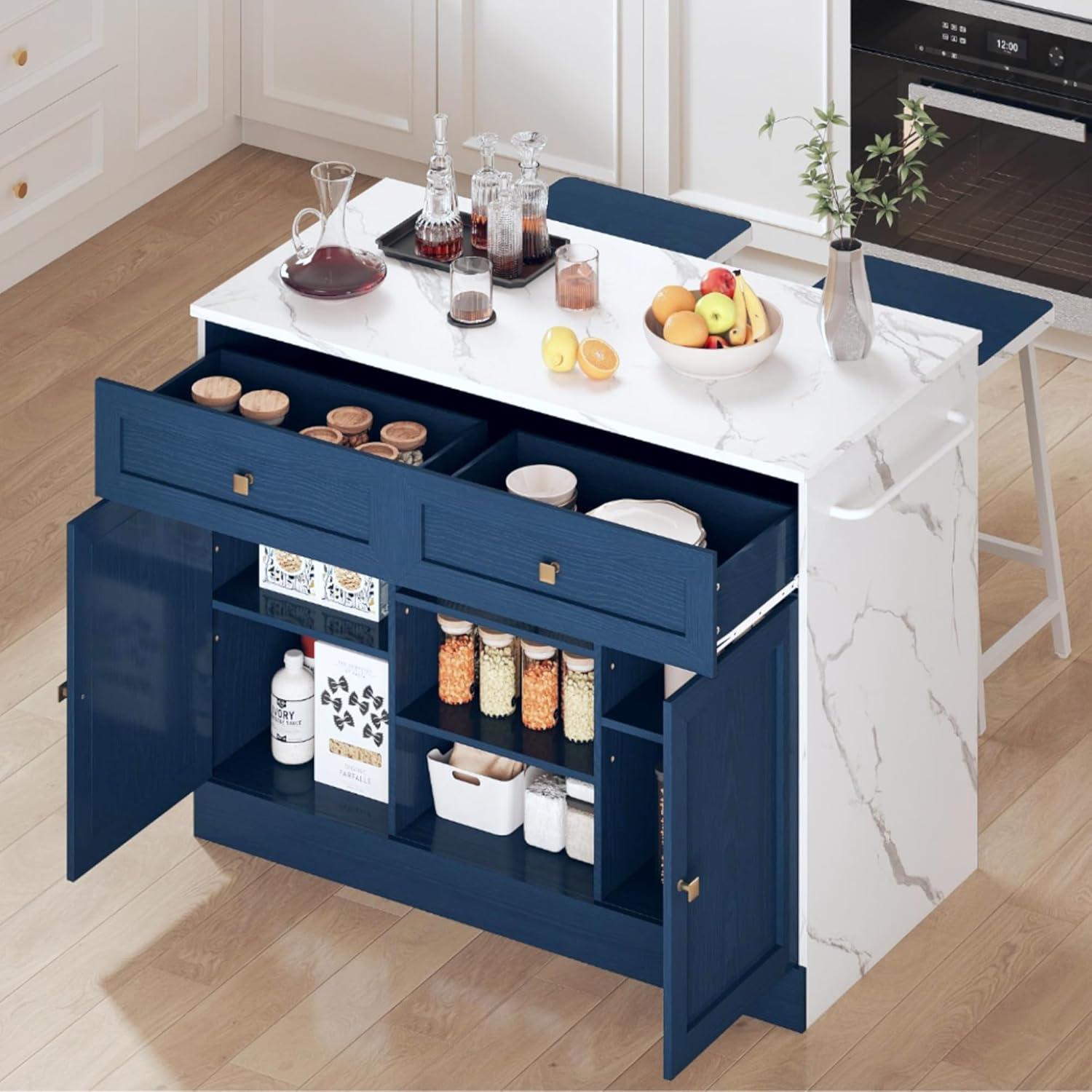Mobile Kitchen Islands include 2 Chairs: This island includes 2 bar stools with soft cushions upgrade, allowing you to relax your legs and feet when seated. These stools are robust and dependable, offering users a soft seating option. The whole set is designed in a seamless, integrated fashion.
