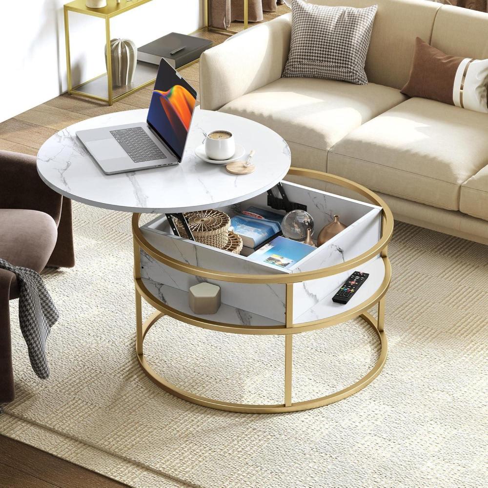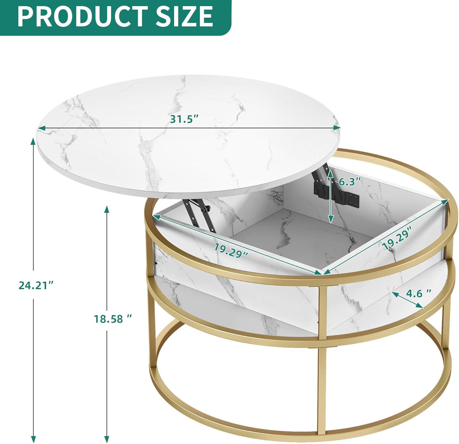 imageYITAHOME Round Lift Top Coffee Tables for Living Room with Hidden Storage Compartment Modern Grey Coffee Table with Storage 2 Tiers for Home Decor Office Round Center Tables Living Room Table GreyMarble and Gold