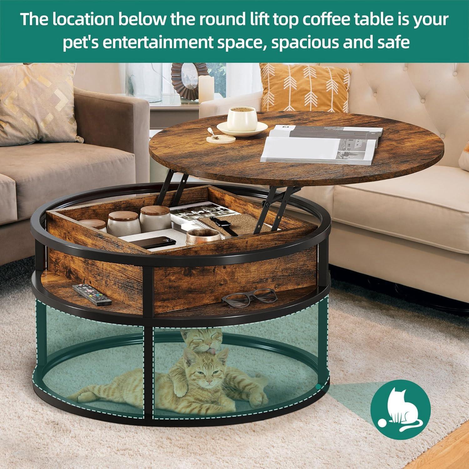 imageYITAHOME Round Lift Top Coffee Tables for Living Room with Hidden Storage Compartment Modern Grey Coffee Table with Storage 2 Tiers for Home Decor Office Round Center Tables Living Room Table GreyRustic Brown