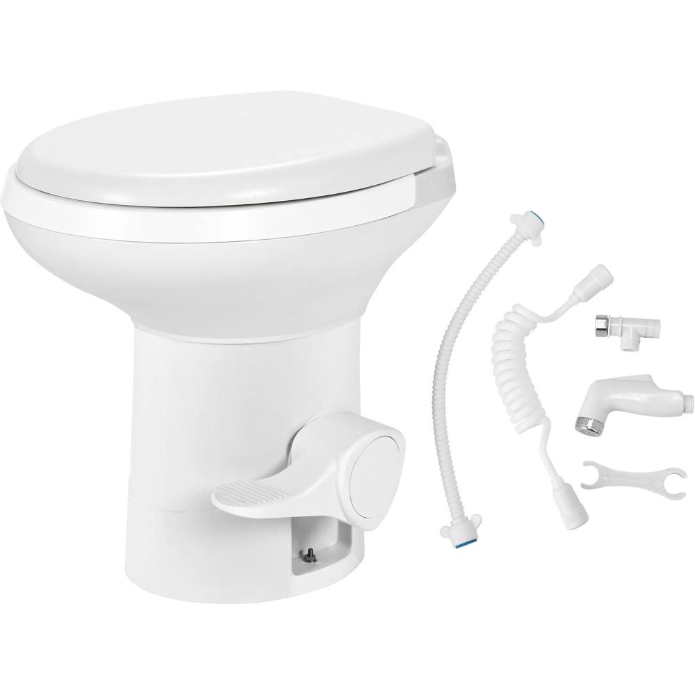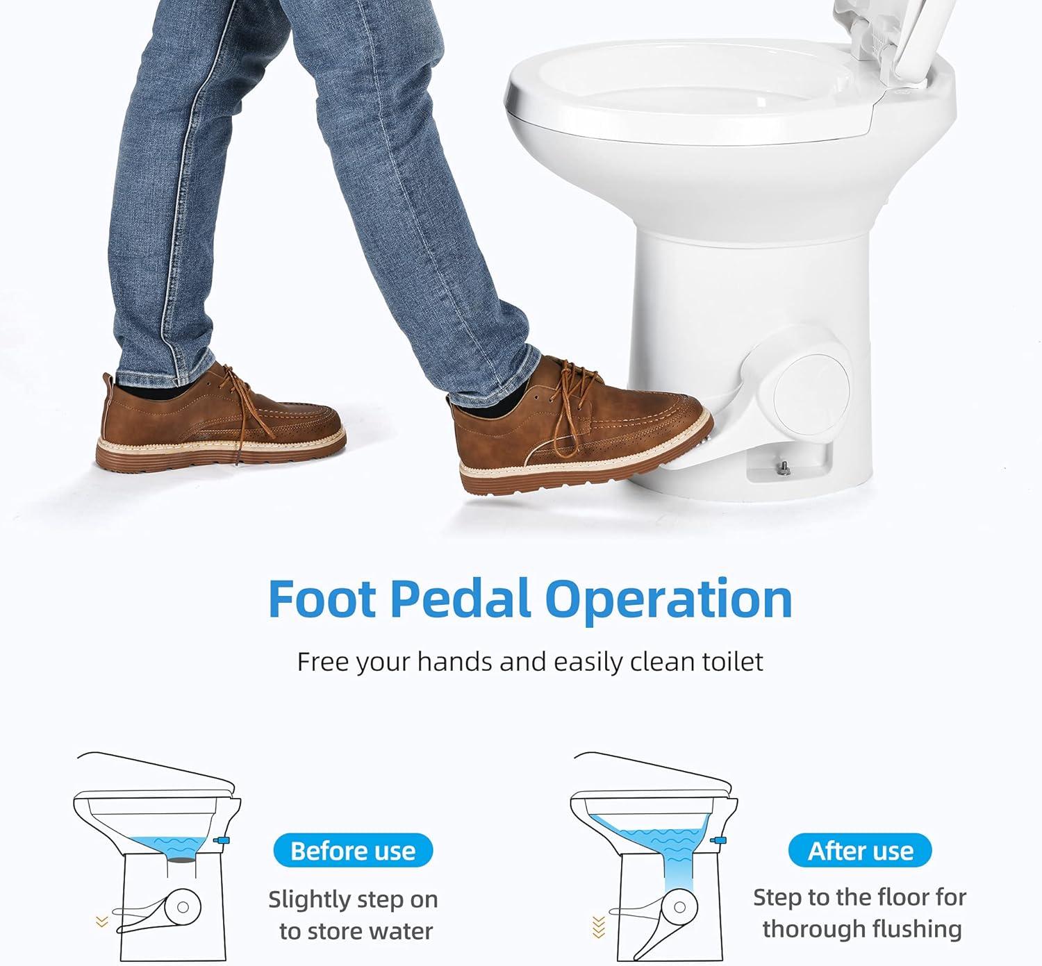 Convenient Foot Pedal: Gently step on the pedal to add water, then press it down to flush. No electricity needed. Slide valve locks in unpleasant odors