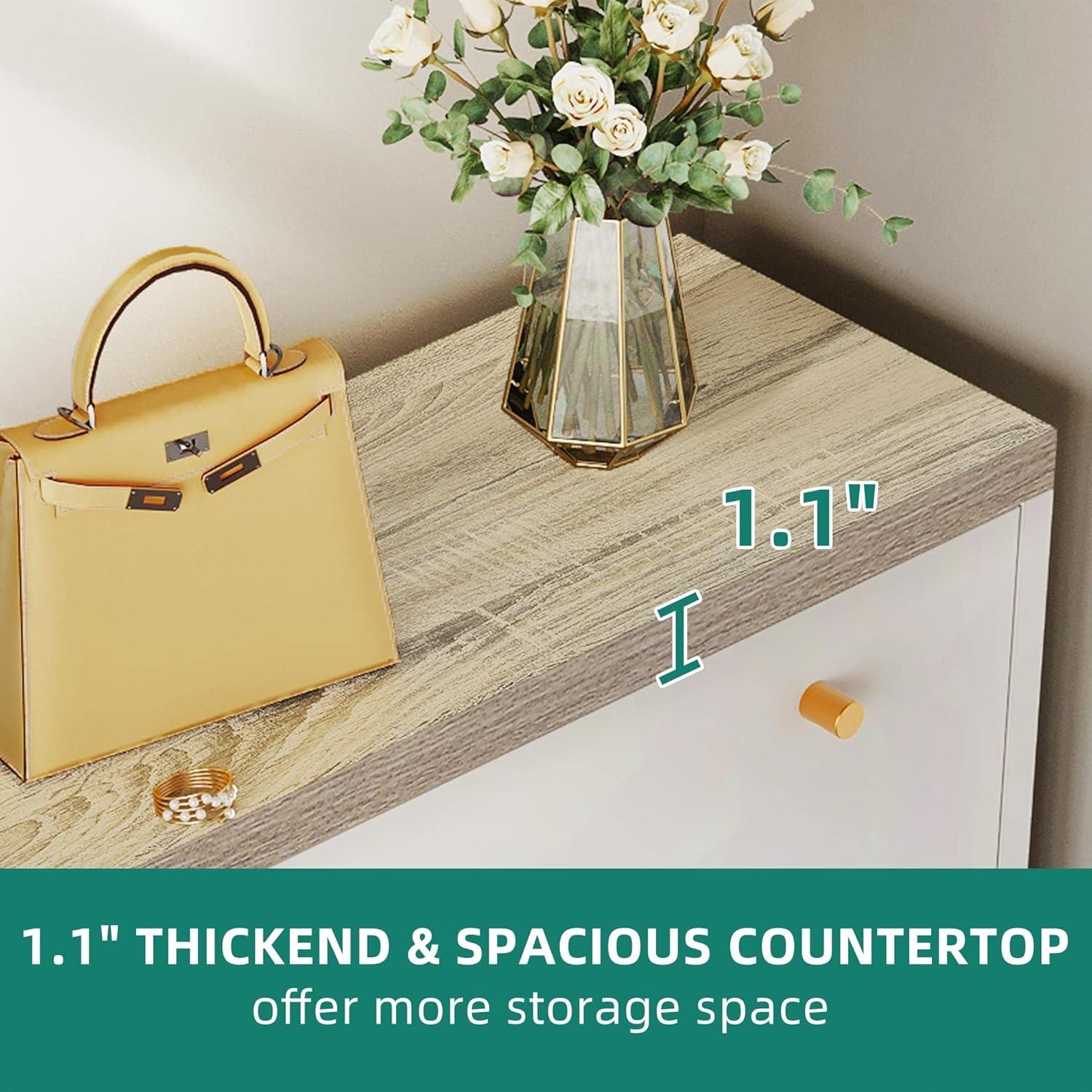 YITAHOME Shoe Cabinet with 3 Flip Drawers, Hidden Shoe Storage Cabinet with Shoe Bench for Entryway, Gold Handle Modern Freestanding Shoe Rack, White Living Room Organizer(White)