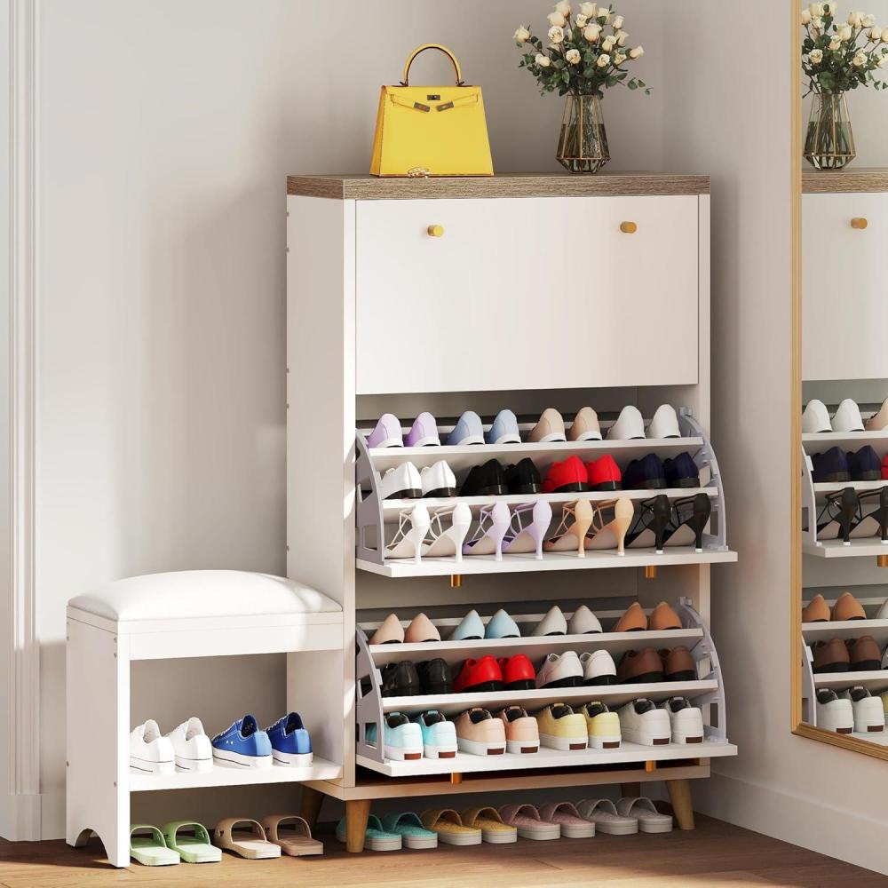 Keep Your Shoes Tidy: 3 spacious flip drawers can hold up to 27 pairs of shoes (depending on the size) to keep them organized and protected from dust. Also, the 3-position adjustable & removable dividers make it easy to fit all of your shoes.