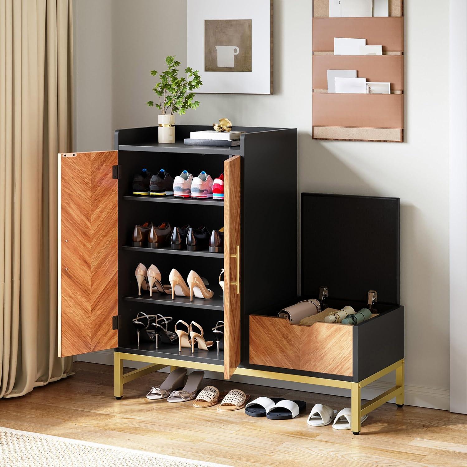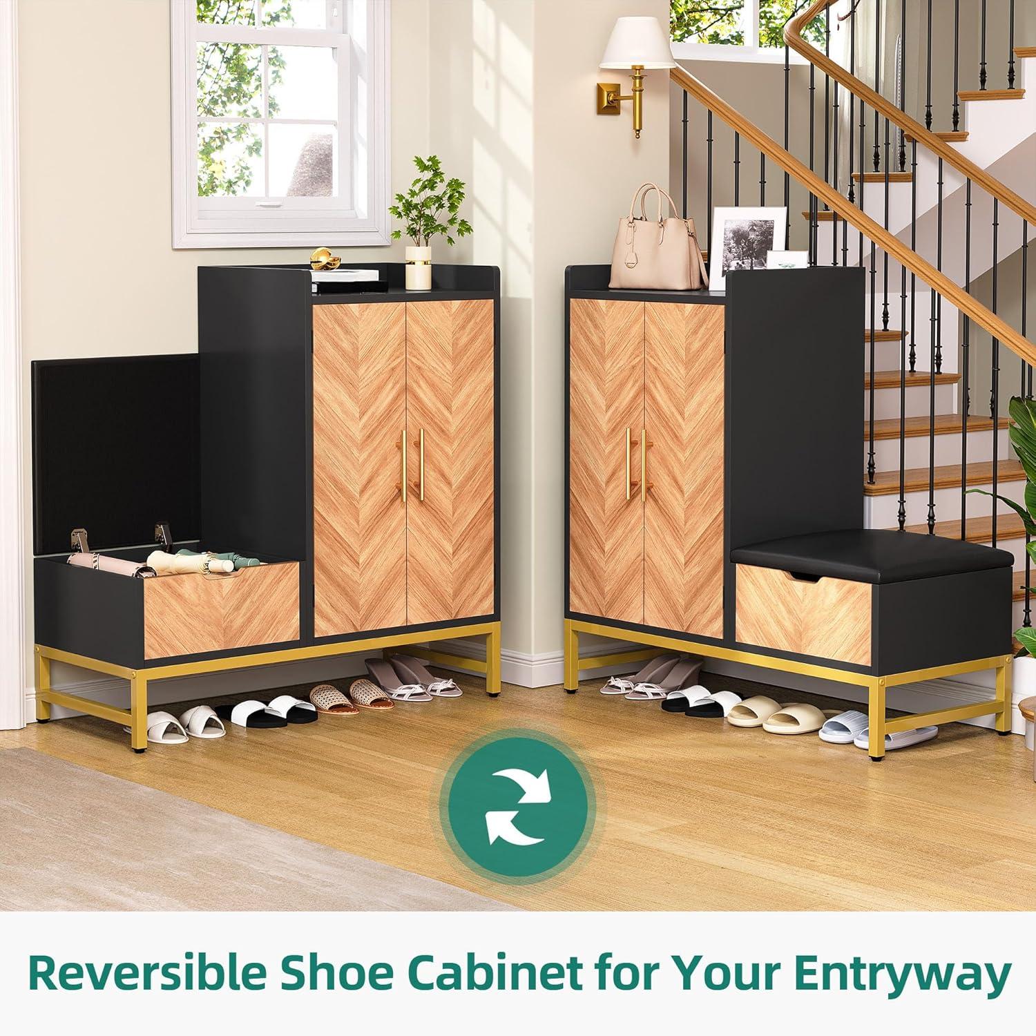 Versatile Design for Any Space: This shoe cabinet with storage bench combines style and functionality. The reversible, storable bench lets you customize its placement, making it right for hallways, entryways, or mudrooms