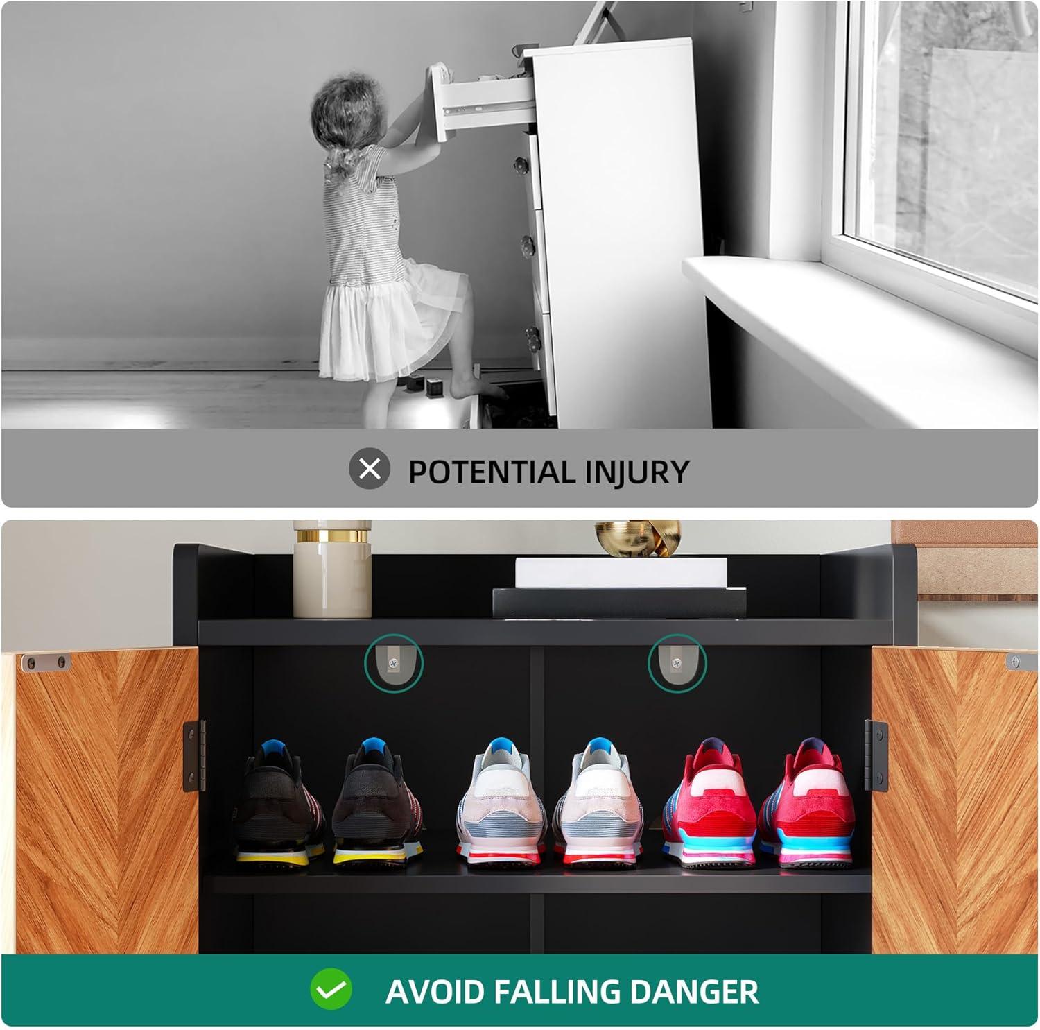 Improved Airflow & Stability: Built-in ventilation cutouts ensure your shoes stay fresh, even in a compact space. All your footwear stays neat and ready to wear. Plus, two wall anchor kits keep the cabinet stable, even in busy households
