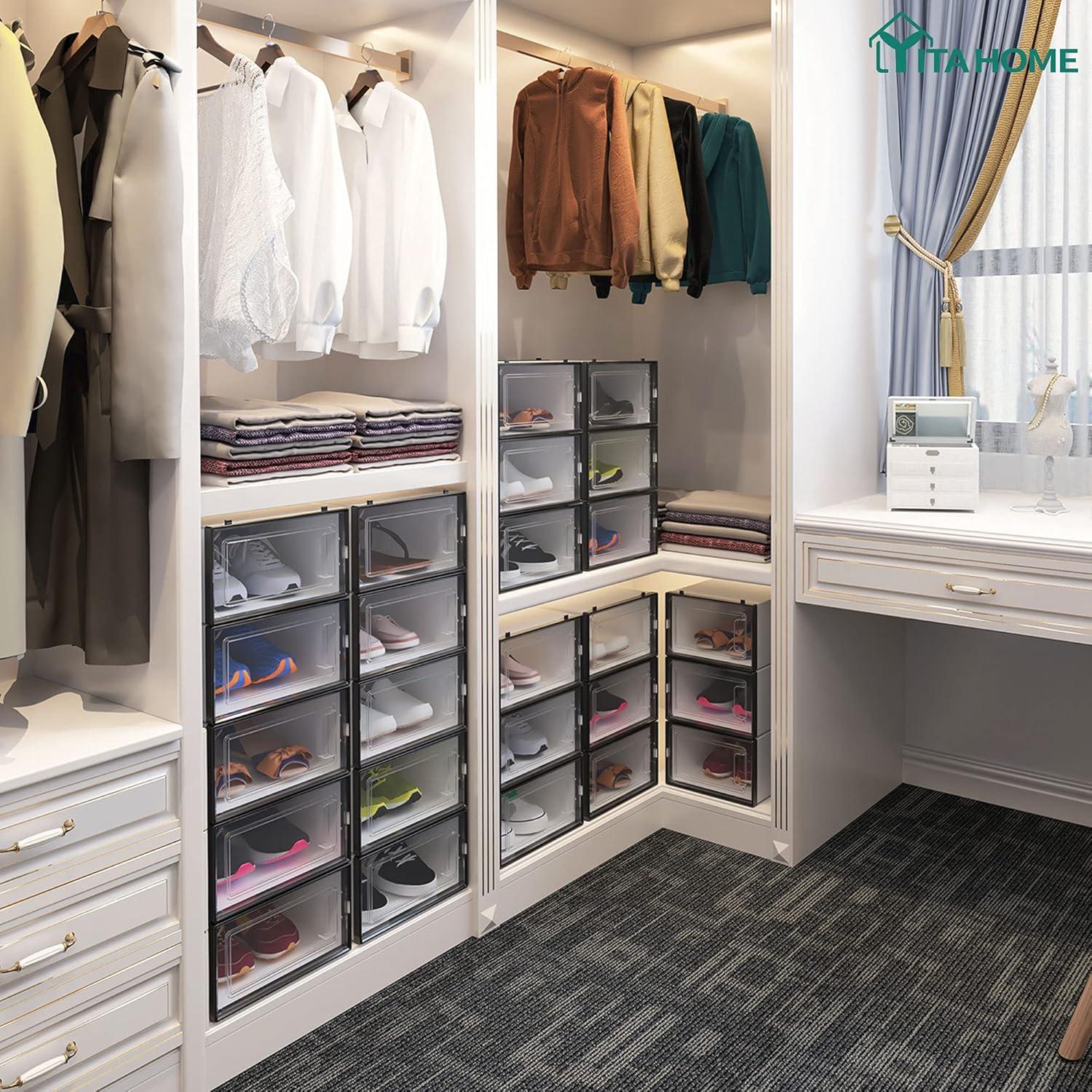 Space-Saving: Great for conserving closet space; Keep a set of YITAHOME stackable shoe boxes in your closet to avoid cluttering up living space and keeping your area neat & organized