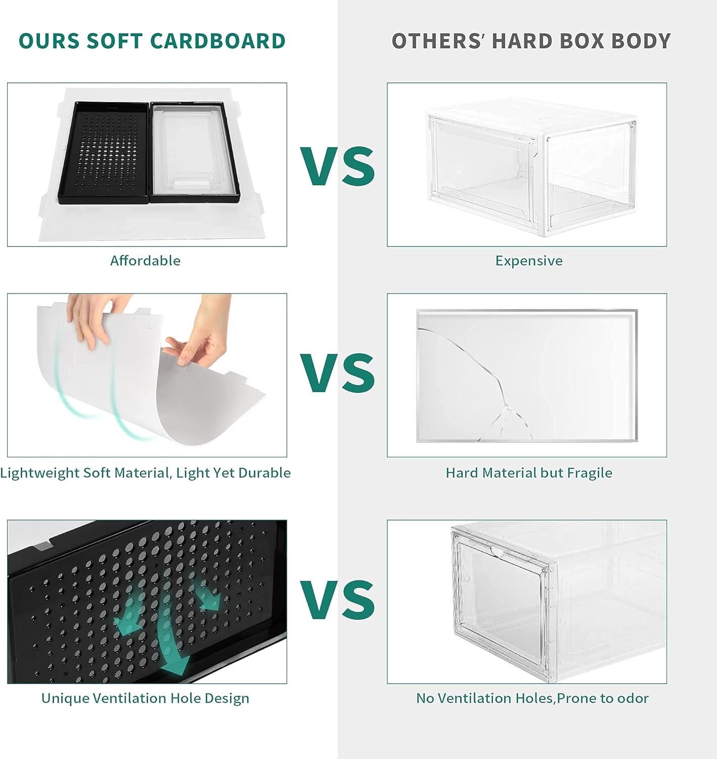 Dust-Free & Odor-Free: The shoe box is designed to keep out dust; Ventilation holes on the back cover facilitate air circulation to dissipate odors