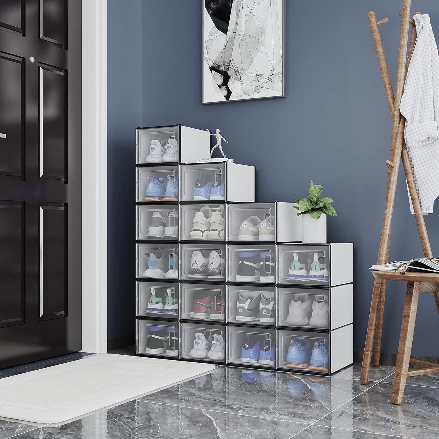 imageYITAHOME Shoe Storage Box Set of 12 Medium Size Shoe Storage Organizers Stackable Shoe Storage Box Rack Containers  Medium Size138L x 98W x 73HWhiteBlack