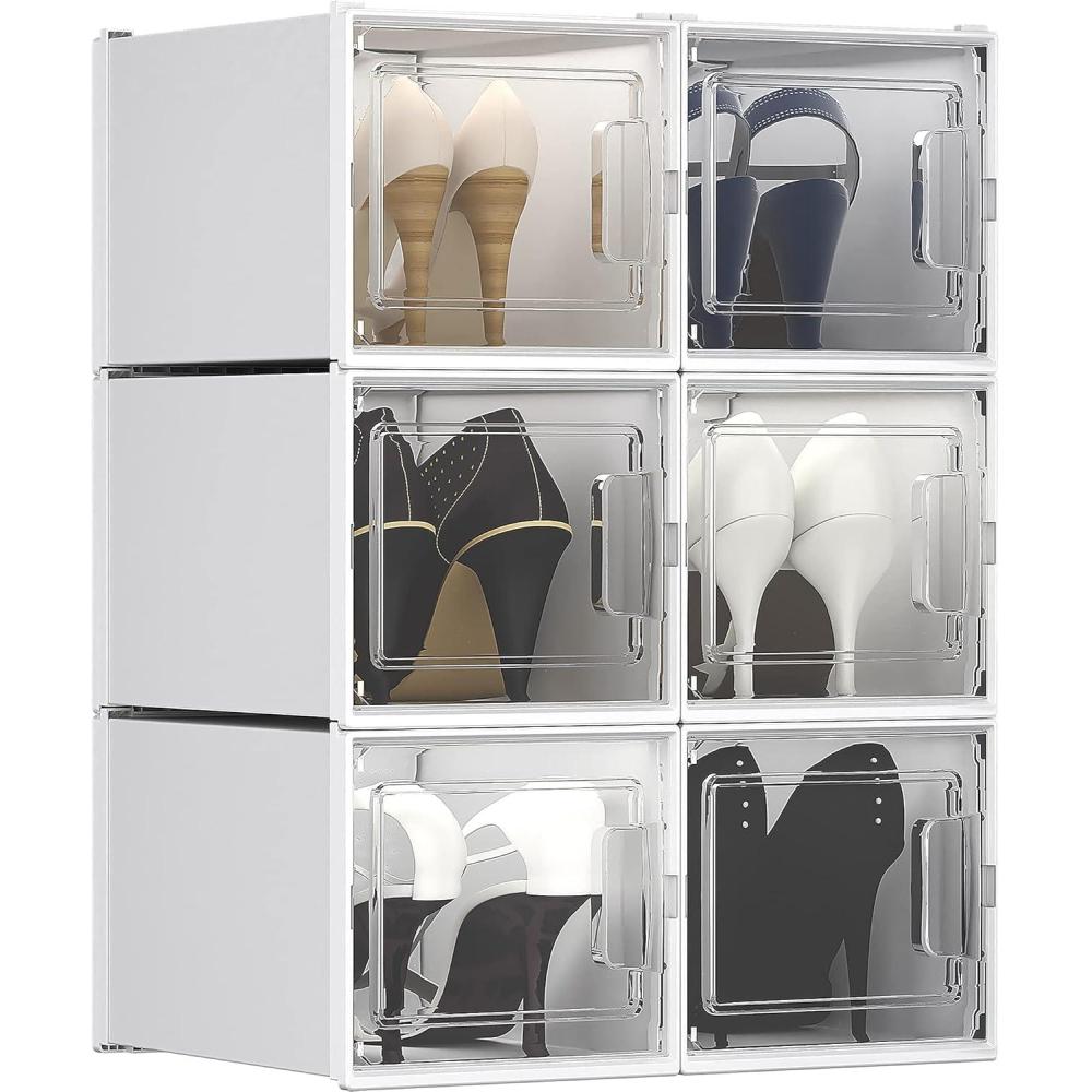YITAHOME Shoe Storage Box, Set of 6 Shoe Storage Organizers Stackable Shoe Storage Box Rack Clear Drawer-White