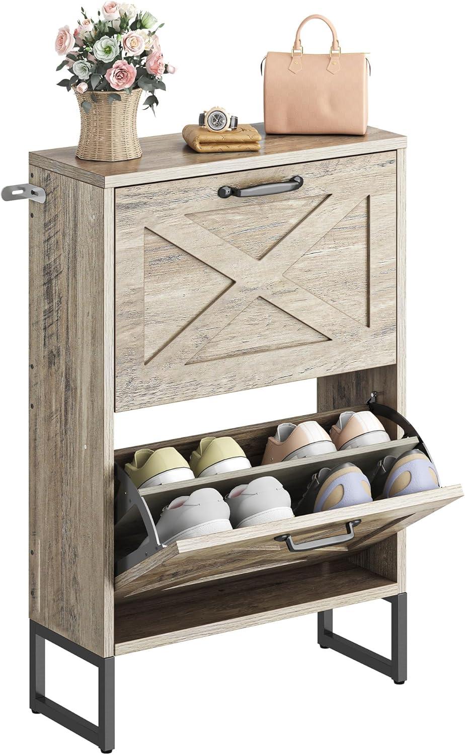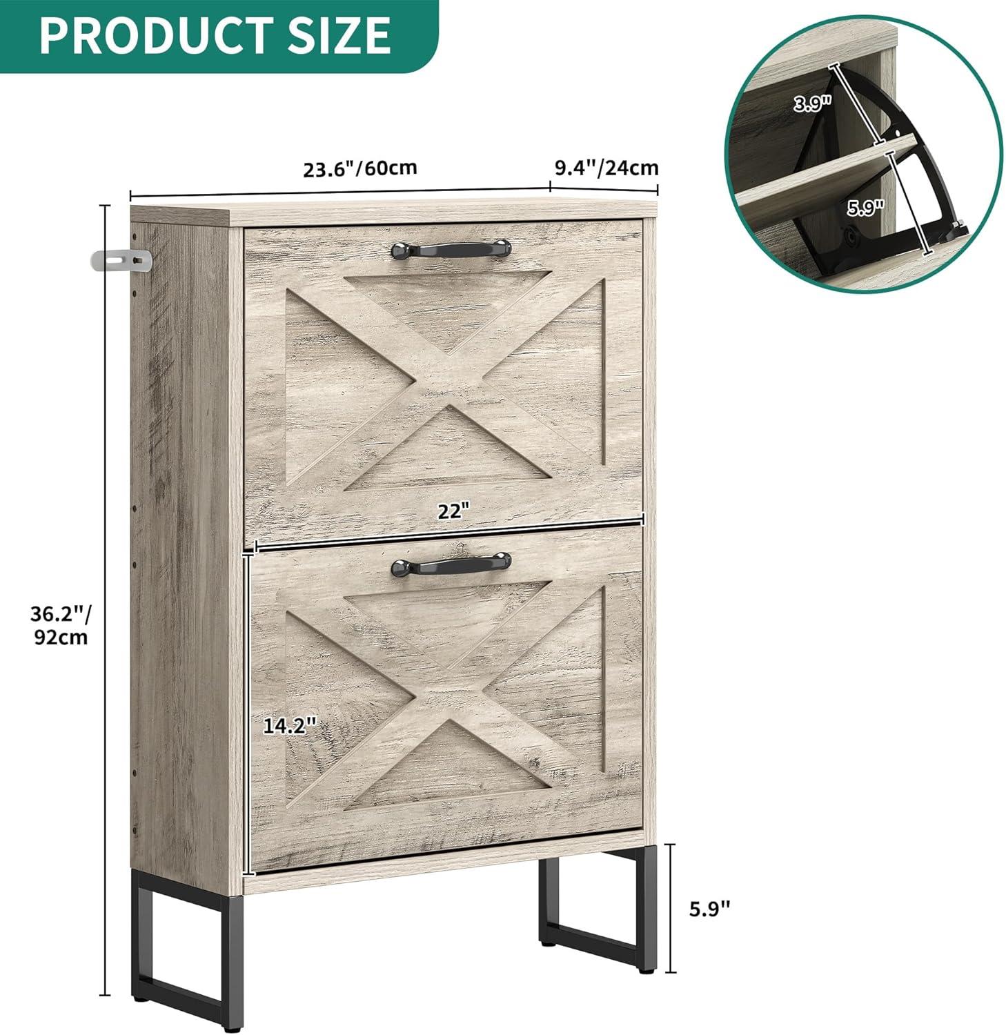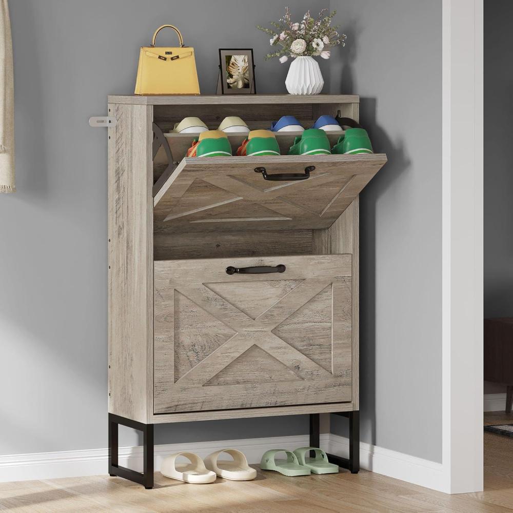 Safe and reliable: With an anti-tipping device and sturdy construction, our slim hidden shoe cabinet prevents the risk of tip-over accidents. Not only does it adds flair to your space, but it also ensures the safety of your loved ones