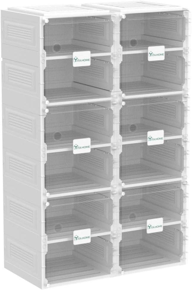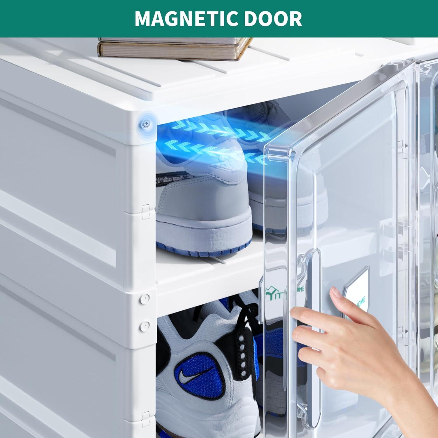 EXQUISITE DETAILS: Double pane transparent door panel and built-in strong magnetic self-priming cabinet door perfectly harmonize to offer sleekness with practicality; Folding shoe rack with ventilation holes on the door preserves your valuable shoes for years.