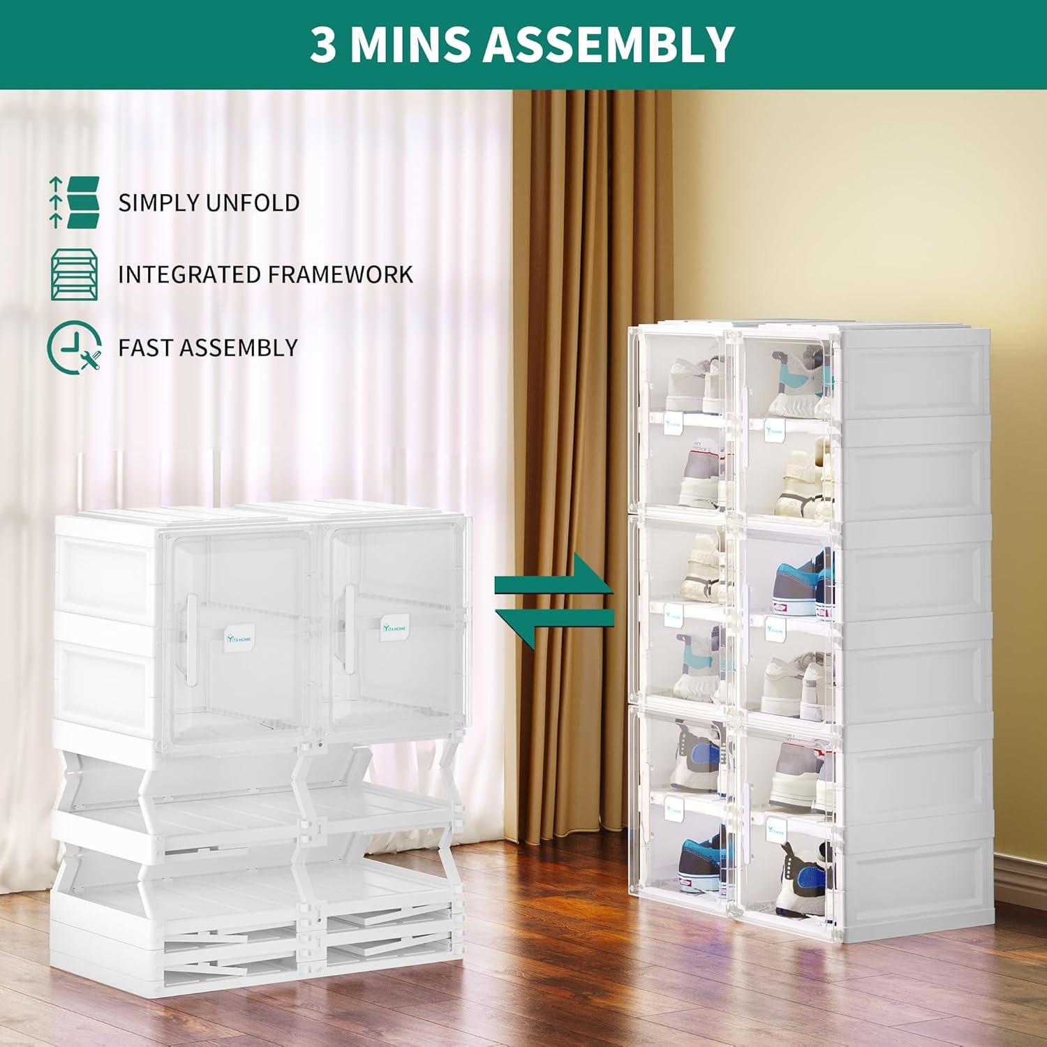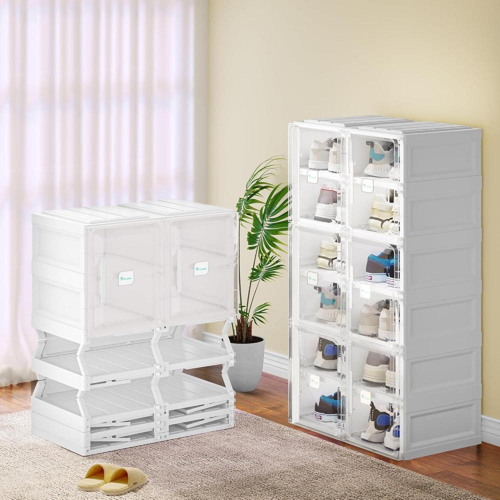 MULTIFUNCTIONAL STORAGE BOX: A collapsible shoe rack that caters to all kinds of storage needs; Accommodates everything from standard-sized men's and women's shoes such as sneakers, flat shoes, high heels, etc., to daily items like books, baubles, cosmetics, snacks, towels, collections; Just throw them in and enjoy an organized life.