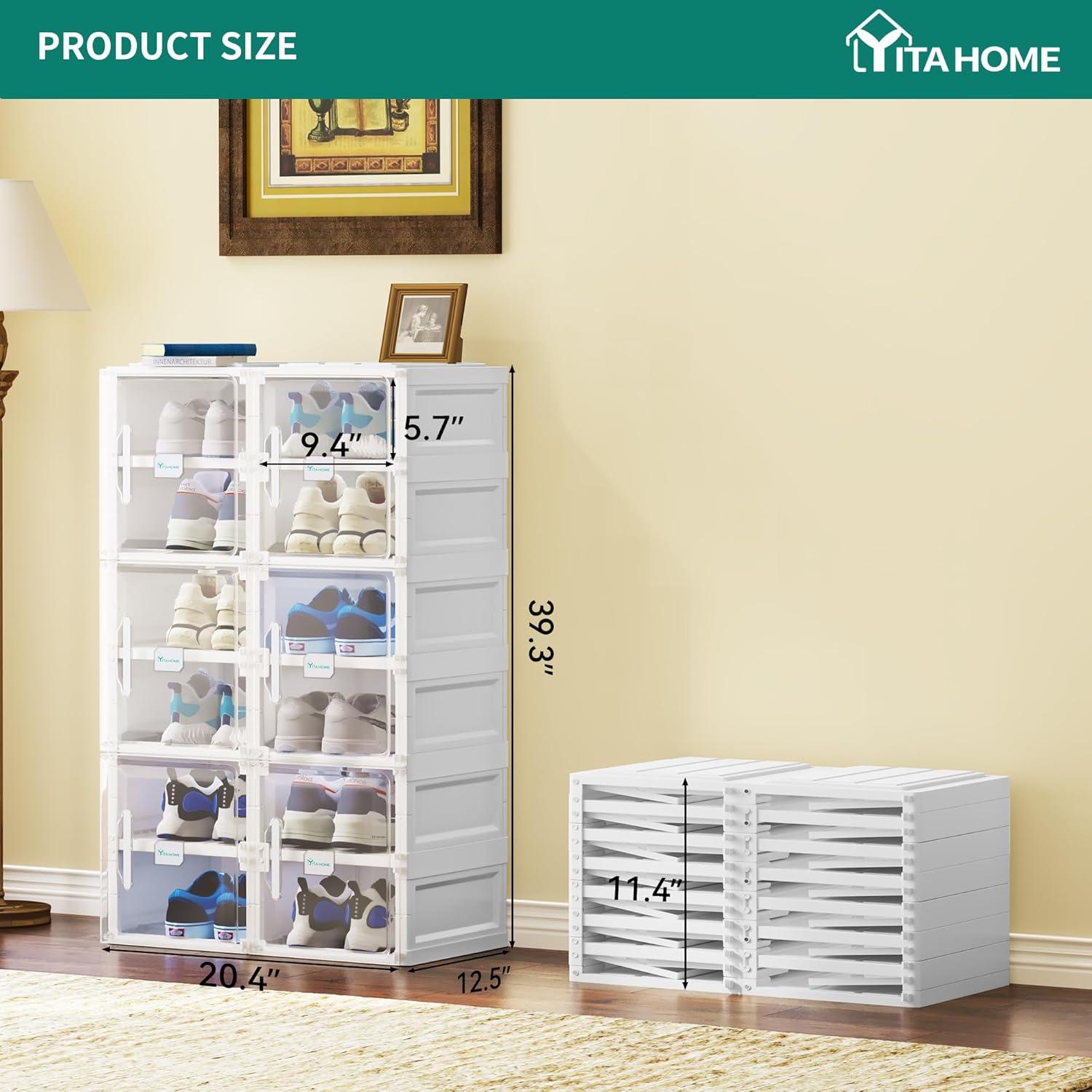 INNOVATIVE STRUCTURE: The foldable shoe rack features 6 layers (12 cubbies); Single compartment and box top capacities are 22 and 130 pounds respectively; Top surface creates a impeccable display spot for placing lamps, plants, and decors.