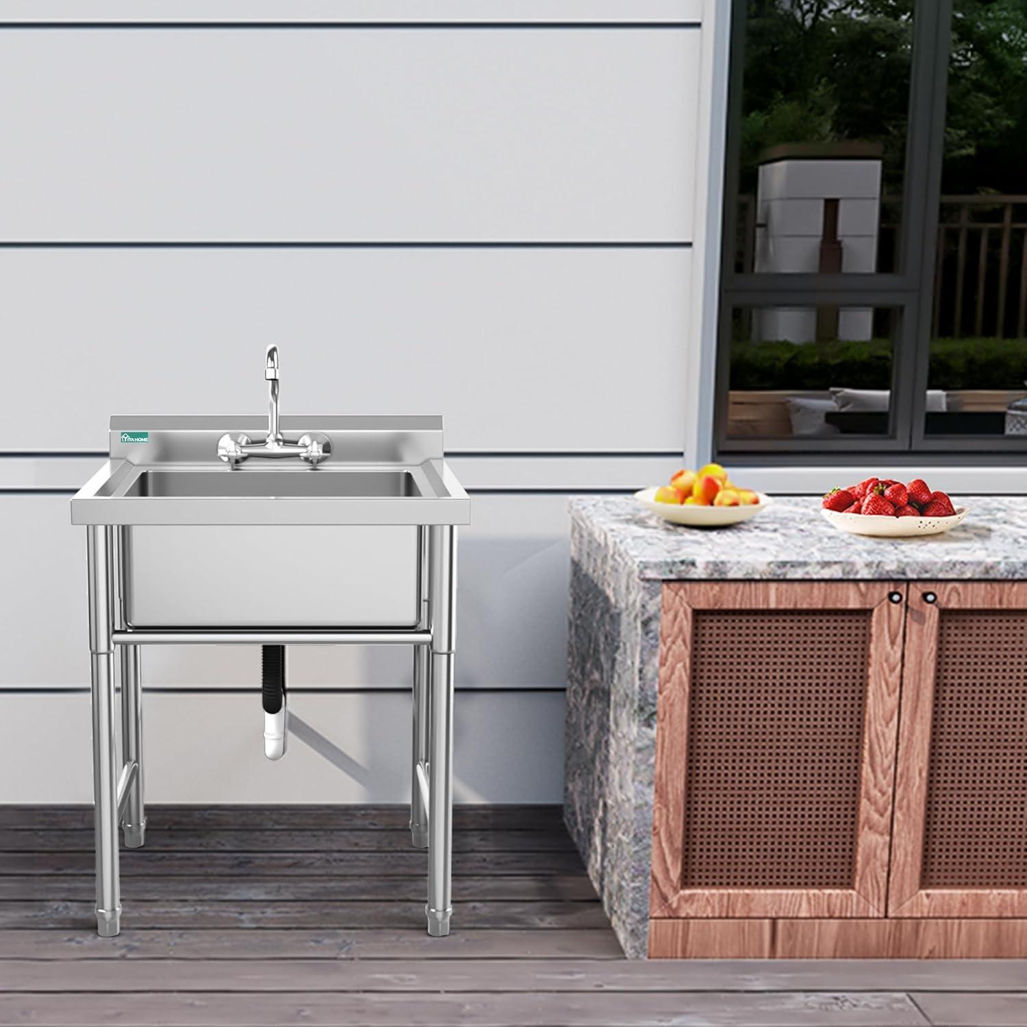 Sturdy stainless steel: this freestanding utility sink, made of durable stainless steel, resists corrosion, oxidation, and deformation, ensuring long-lasting durability without rust or warping. its easy-to-clean surface saves you time