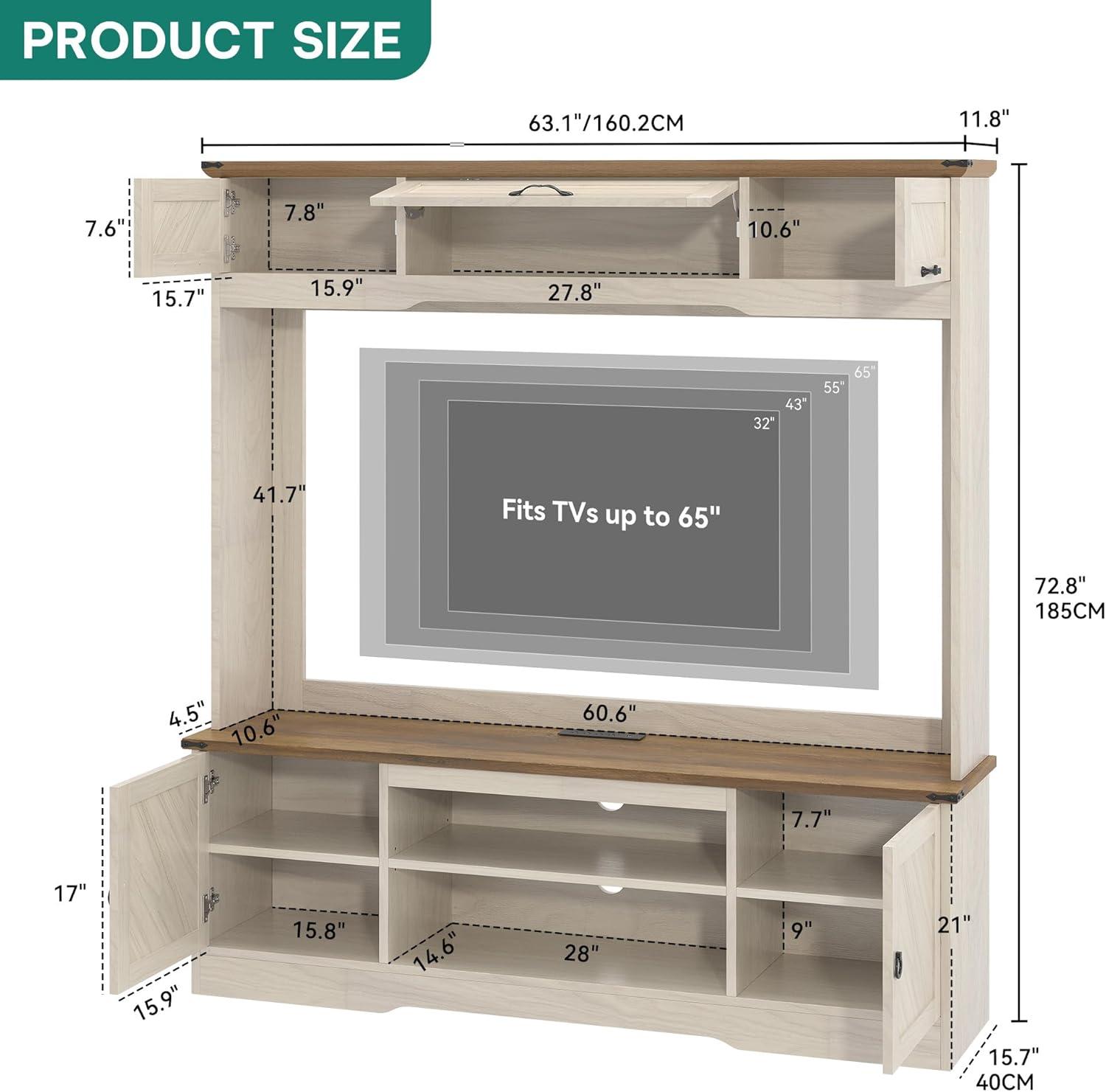 Clever Storage: With space for up to a 65-inch TV, 3 easy-to-access flip-top cabinets, 1 open area and 2 bottom cabinets, this tv stand keeps your living room neat and your entertainment essentials close at hand. Its adjustable middle shelf fits your larger devices effortlessly