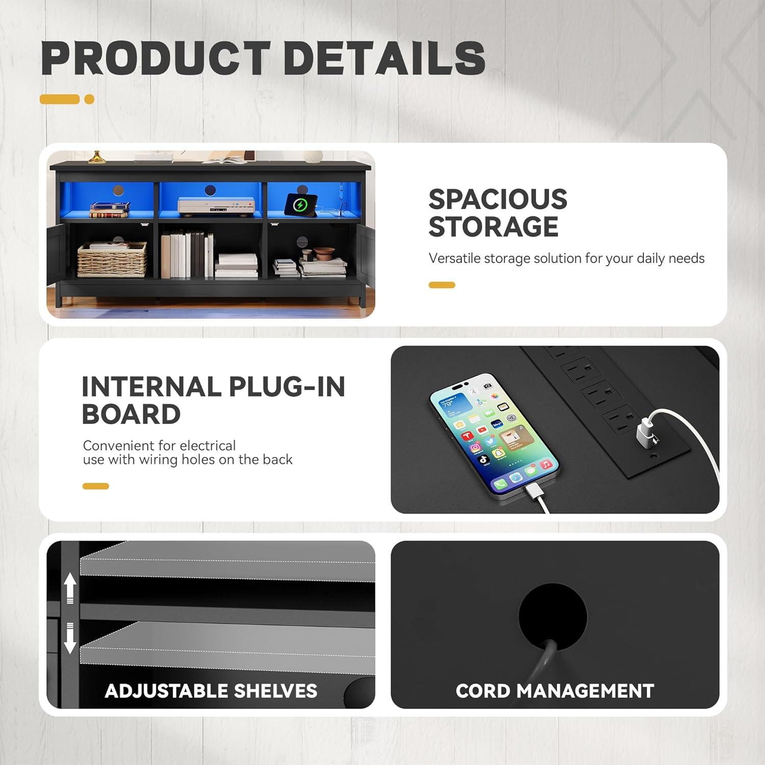LIGHTED ENTERTAINMENT CENTER: This stylish living room furniture enhances your TV viewing experience and entertainment ambiance; integrated LED light strips offer a variety of colors to create a dynamic atmosphere that matches your mood