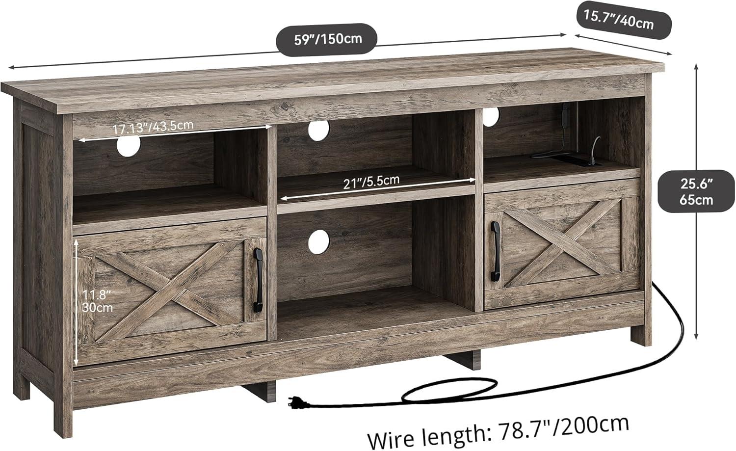 FARMHOUSE TV CABINET: The YITAHOME TV cabinet measures 59 inches long x 15.7 inches wide x 25.6 inches high and supports up to a 65-inch TV; featuring a clean color palette and lines that enhance the aesthetics of your living room