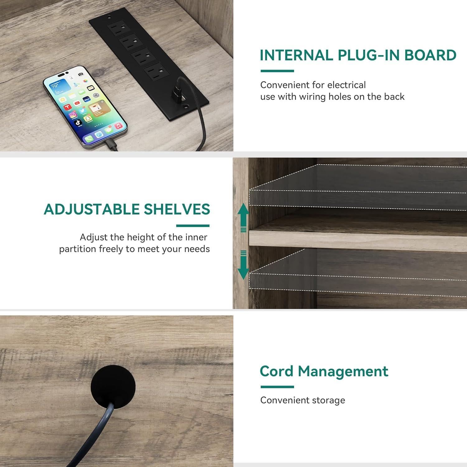EASY-TO-USE DETAILS: Our media console features a built-in power outlet and cable management system for added convenience, and a magnetic door latch for easy installation