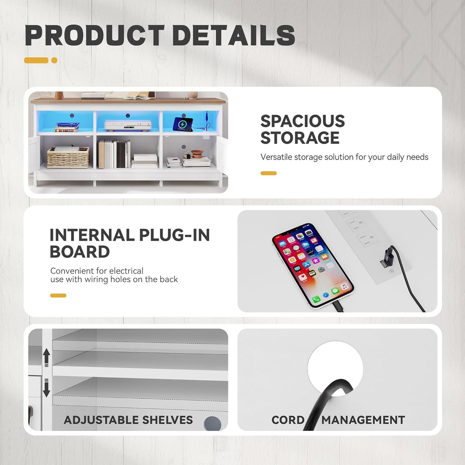 LIGHTED ENTERTAINMENT CENTER: This stylish living room furniture enhances your TV viewing experience and entertainment ambiance; integrated LED light strips offer a variety of colors to create a dynamic atmosphere that matches your mood