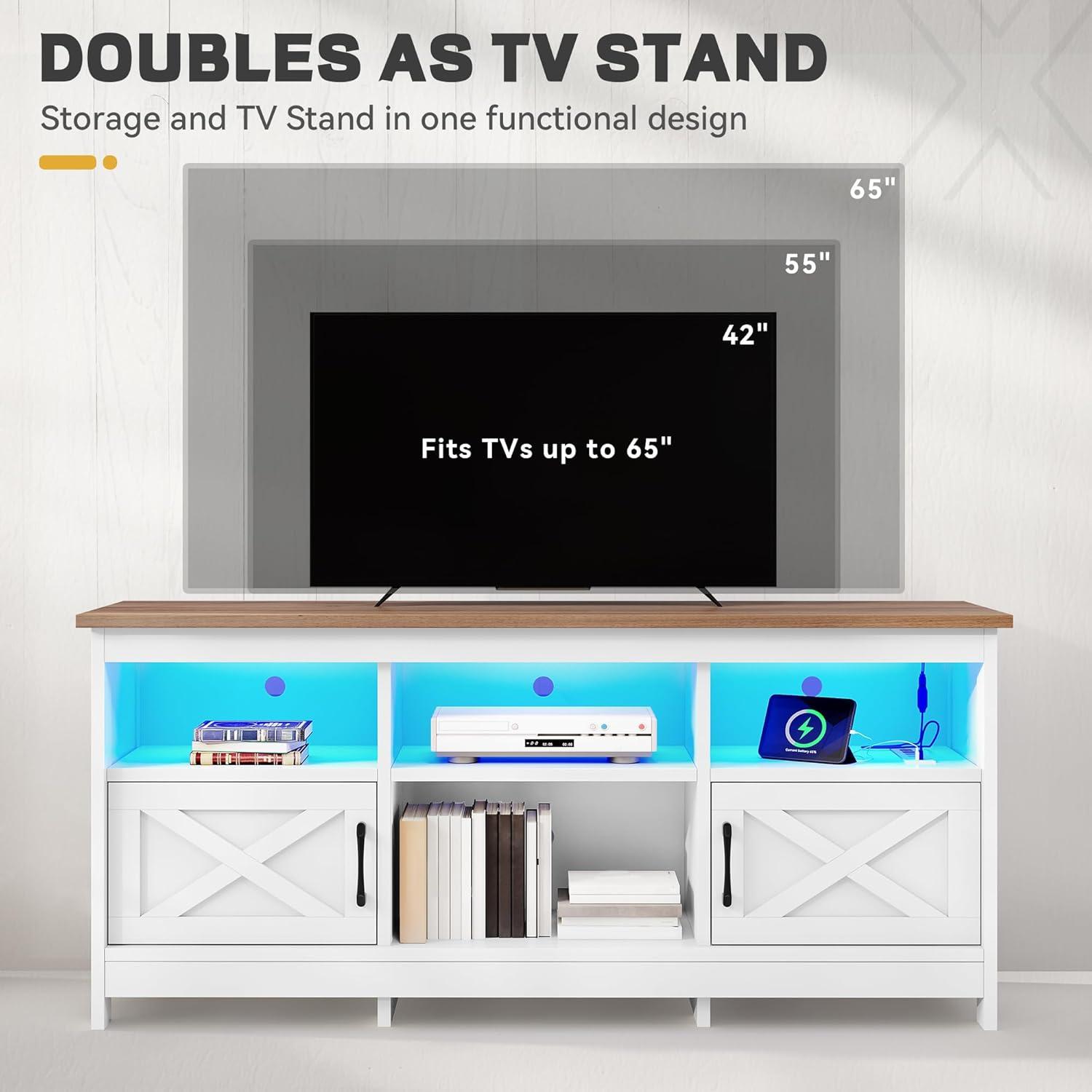 YITAHOME TV Stand for 65 Inch TVs, Entertainment Center with Storage Cabinets, Power Outlet & LED Light, Media TV Console with Barn Doors for Living Room, Black(White & Walnut)