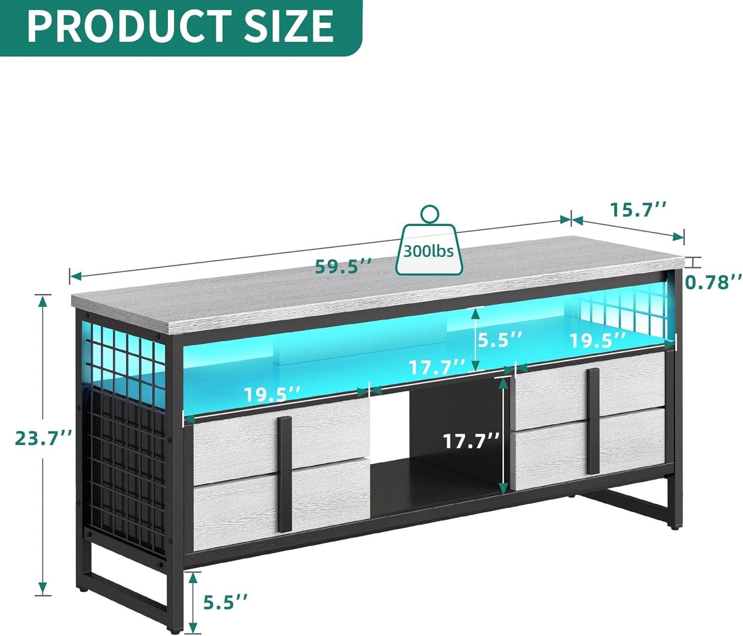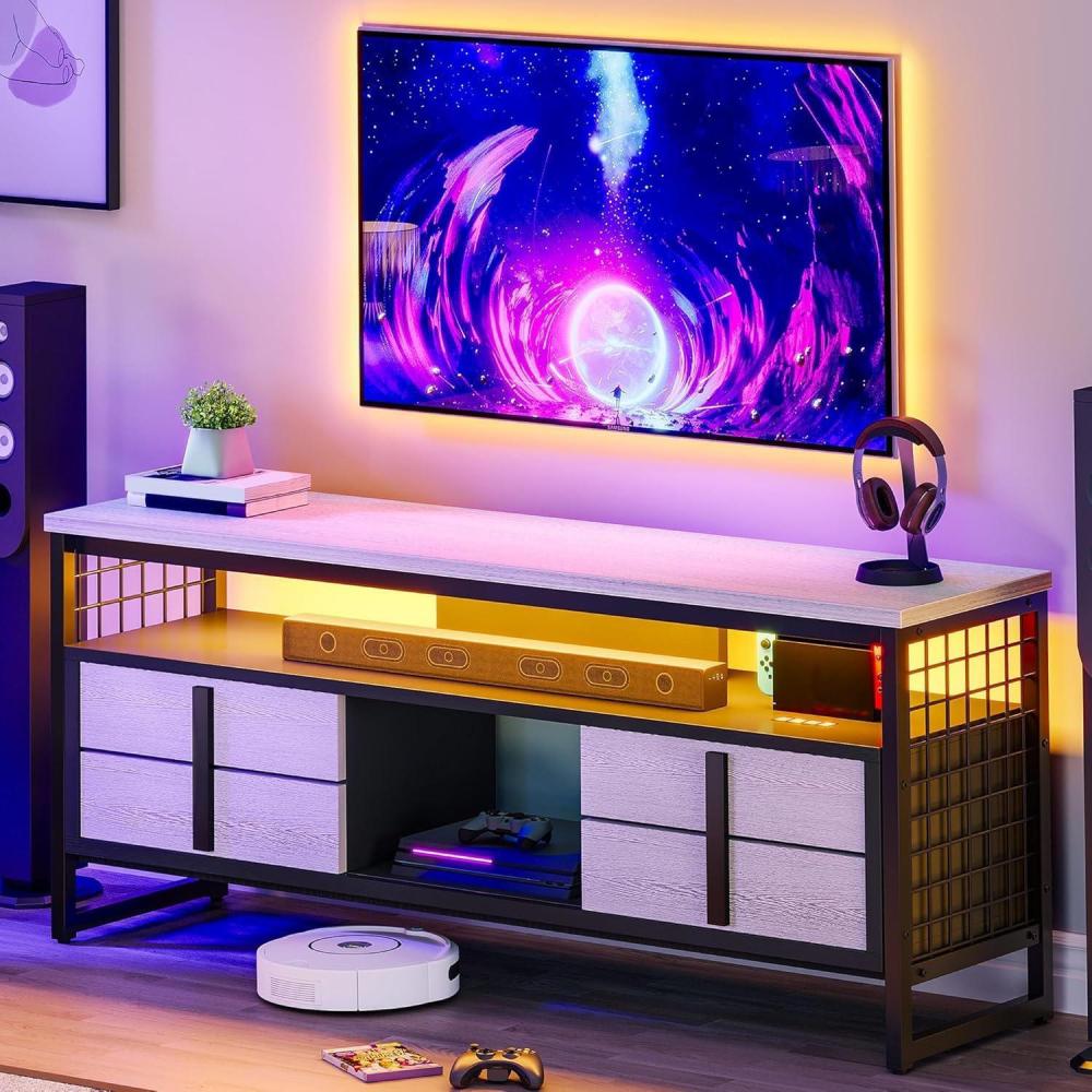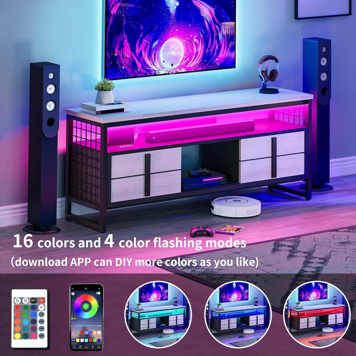 TV Stand with LED Light : Media Console TV Stand with RGB LED Lights, Offers 16 Colors and 4 Modes, Change the Light Color to Match the Mood by Remote Control, Make Your Movies and Games More Enjoyable.